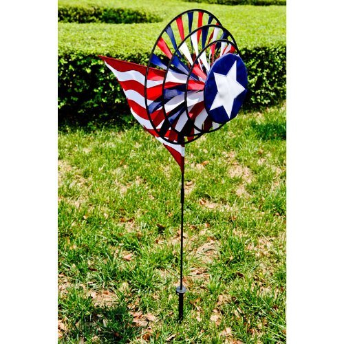 Includes (1) 14" Double Patriotic Flower Wind Spinner Great yard decoration for Memorial Day, 4th of July, Veteran's Day, Flag Day or just to show your patriotism. Minimal assembly is required Your garden will come alive with kinetic color with our garden spinners. You will be mesmerized as you watch them spin In the Breeze