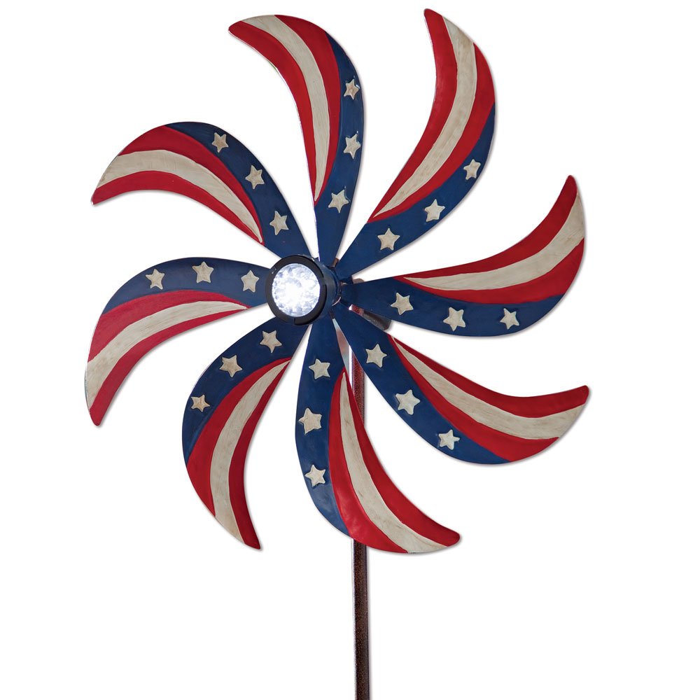 You've never seen red, white, and blue blow in the breeze quite like this. This pinwheel is accented with stars and stripes that twirl with every wind. It's perfect from Memorial Day's first barbeque through the Fourth of July and beyond.