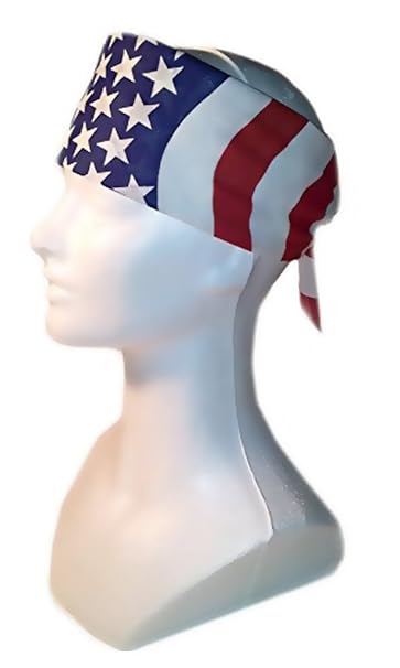 Show your patriotic American spirit today with this comfortable head wrap. Lightweight, 100% Biker Cap, aka durag, doo rag, skull cap. One Size to Fit many Men, Women and Teens. One side has an inverted United States image. Suitable for Athletes, Medical, Healthcare, Bikers, Truckers, Painters, Restaurants and Food Workers to Keep Hair Out of Face. Hand wash in cold water with mild detergent. Air dry to lessen fading, bleeding, shrinkage or other damage. Makes a great Patriotic gift!
