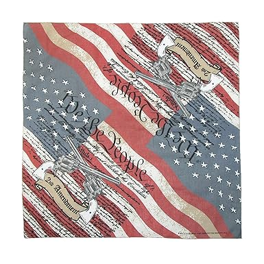 This patriotic bandanna has the writings and representation of the Second Amendment. In the words of Thomas Jefferson, "The beauty of the Second Amendment is that it will not be needed until they try to take it."