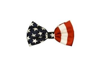 100% Polyester United States Flag Bowtie. It fits neck sizes from 14" to 20". The item makes really nice gift and it come in a beautiful box. "ALREADY MADE" This is bow tie is showing the USA stars and stripes. This is a great patriotic and seasonal bow tie with red and white stripes and white stars over a blue background. This is perfect to wear around the holidays or during any festive season. A definite conversation piece.