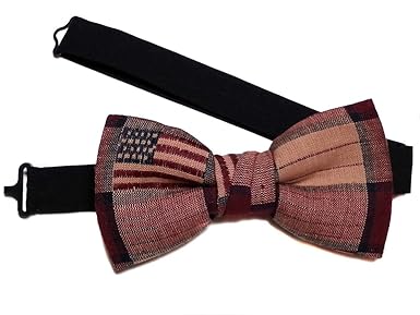 Handcrafted, high-quality textured wooden bow tie with unique styling and patriotic American flag USA pattern Easily attach with adjustable neckband; no need to self-tie a knot Packaged in plain brown gift box; Perfect for all occasions, casual or formal wear Due to natural variations in wood, each piece is unique and may vary slightly in color and pattern detailing
