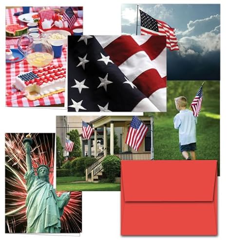 72 Note Cards for $18.99 - Patriotism - 6 Designs - Blank Cards - Red Envelopes Included