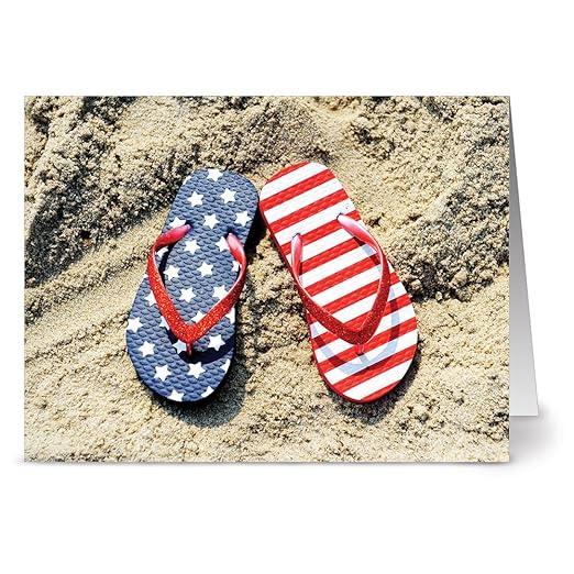 Patriotic Flip Flops - 36 Patriotic Note Cards For $12.99 - Blank Cards - Red Envelopes Included