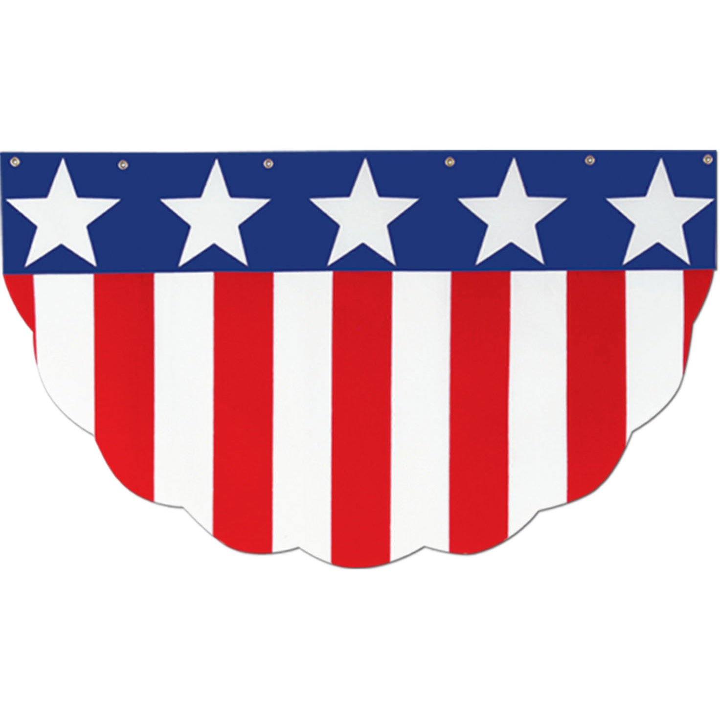 Show your American spirit with these Patriotic Buntings. Hang them near your front entrance for Memorial Day, the 4th of July and Labor Day. Metal grommets along the top make them easy to hang. Made of weather-resistant cotton. Double Bunting, 20" x 65".