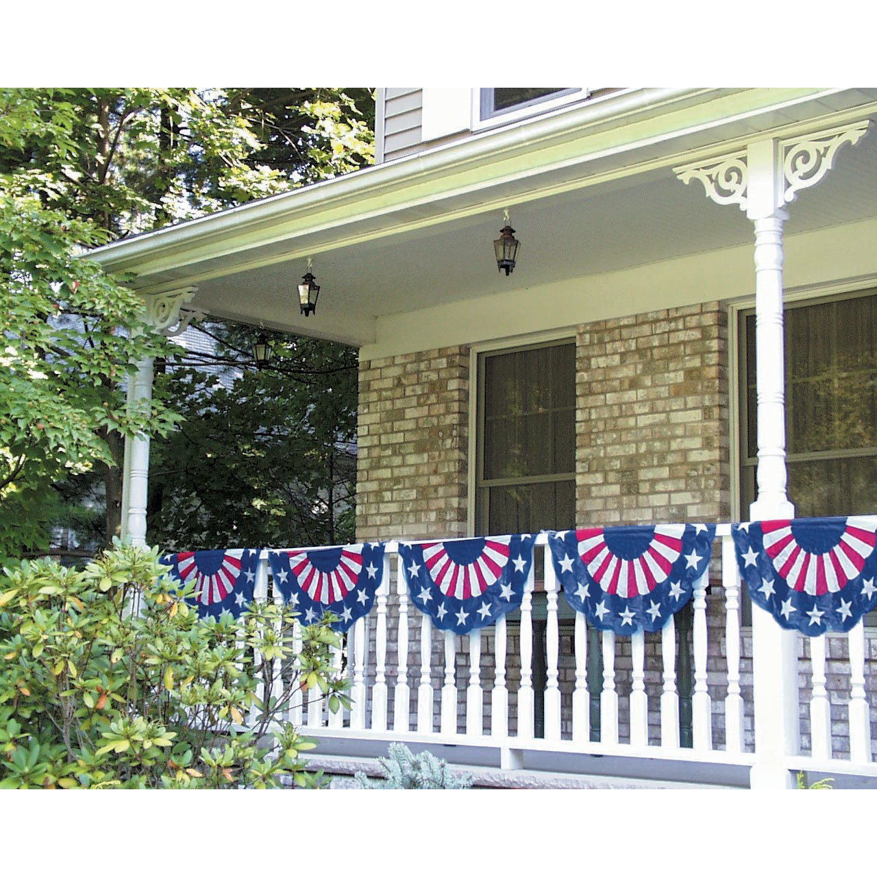 Set of 2 decorative Americana half-buntings Plow & Hearth Exclusive Set of 2 halves is perfect for corners, around porch columns and other hard-to-fit spaces A festive and patriotic decoration for national holidays and all summer long Top grommets for easy hanging