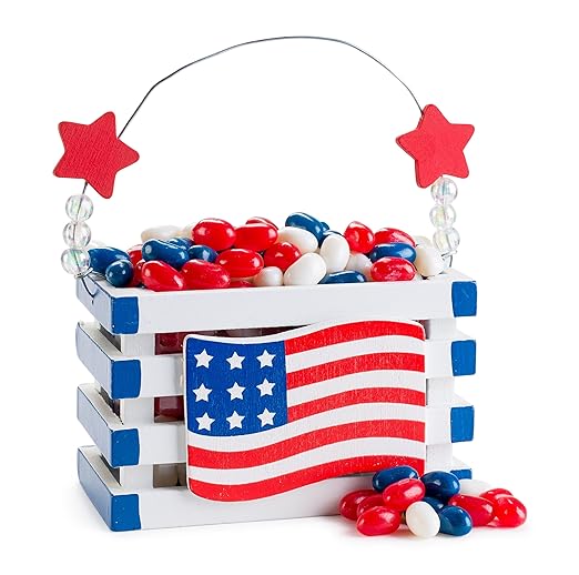 Happy New Years, Red, White, Blue, Jelly Belly Patriotic Designed Wooden Crate Candy Gift