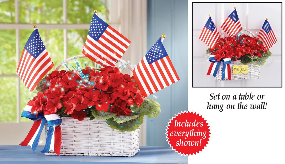 Fiber Optic Patriotic Floral Geranium Basket
