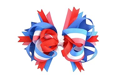 Made in USA Handcrafted, Red, White and Blue, Patriotic hair bow The bow measures 4 inches in width Bow is attached to a grosgrain ribbon lined 1.75 inch alligator clip with an added no slip strip Excellent for all hair types Each Patriotic Bow is Meticulously Handcrafted and Proudly Made in the USA by Funny Girl Designs