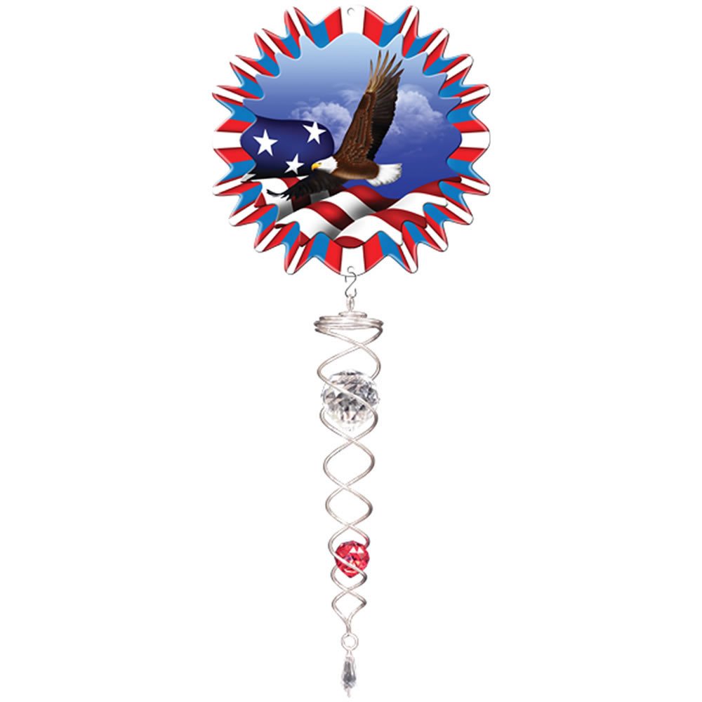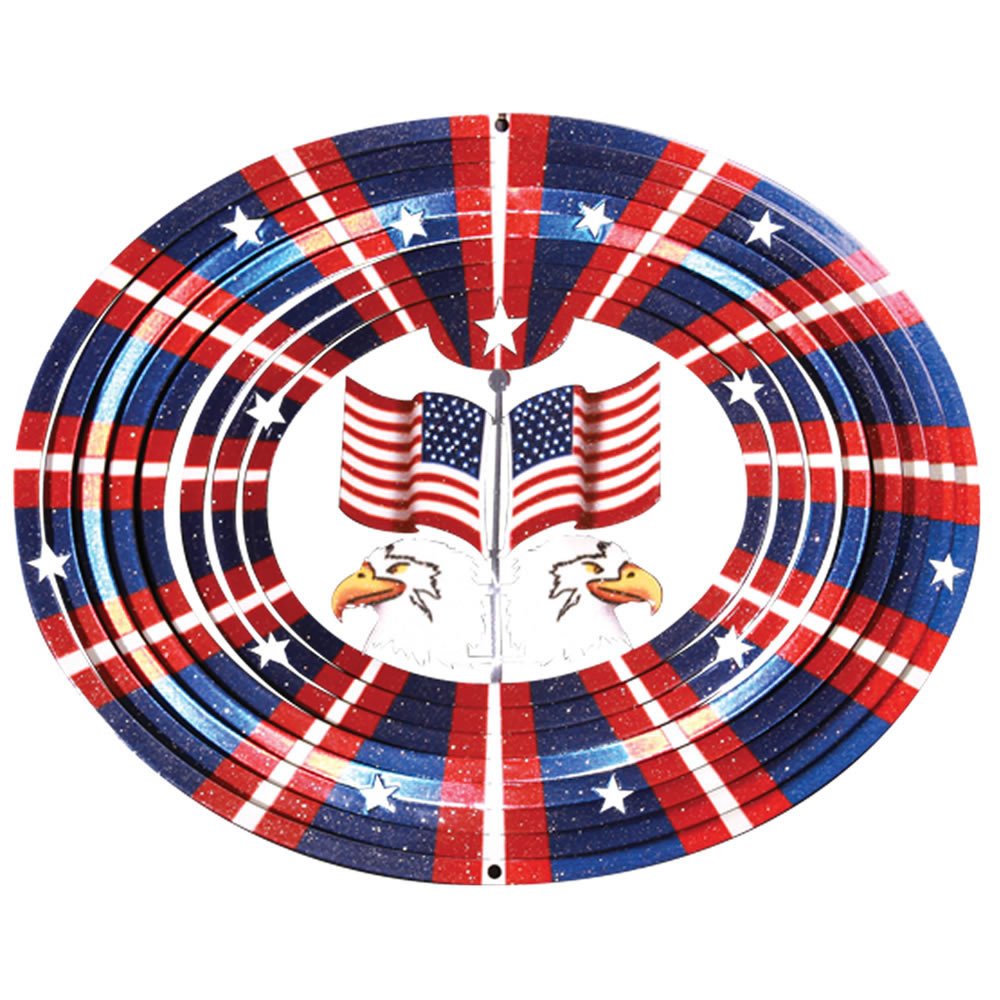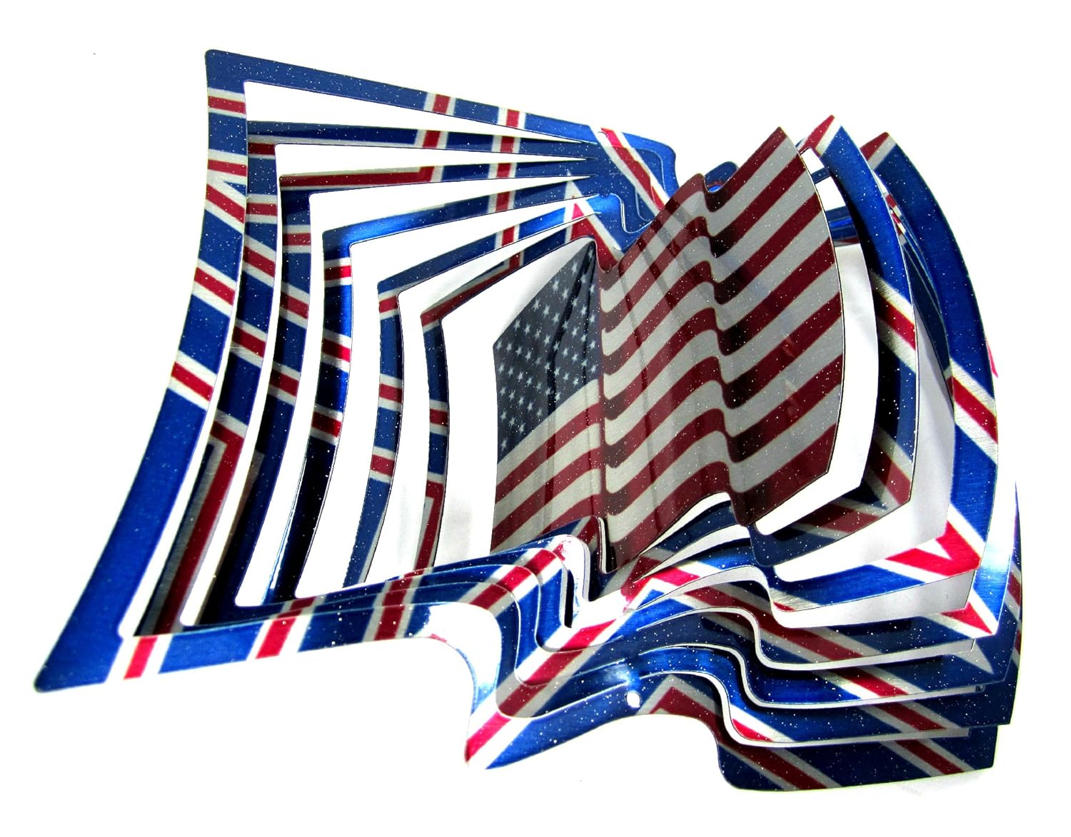 3D Wind Spinner 11" American Flag Patriotic US Red White & Blue Metal Yard Art Lawn Twister & Swivel