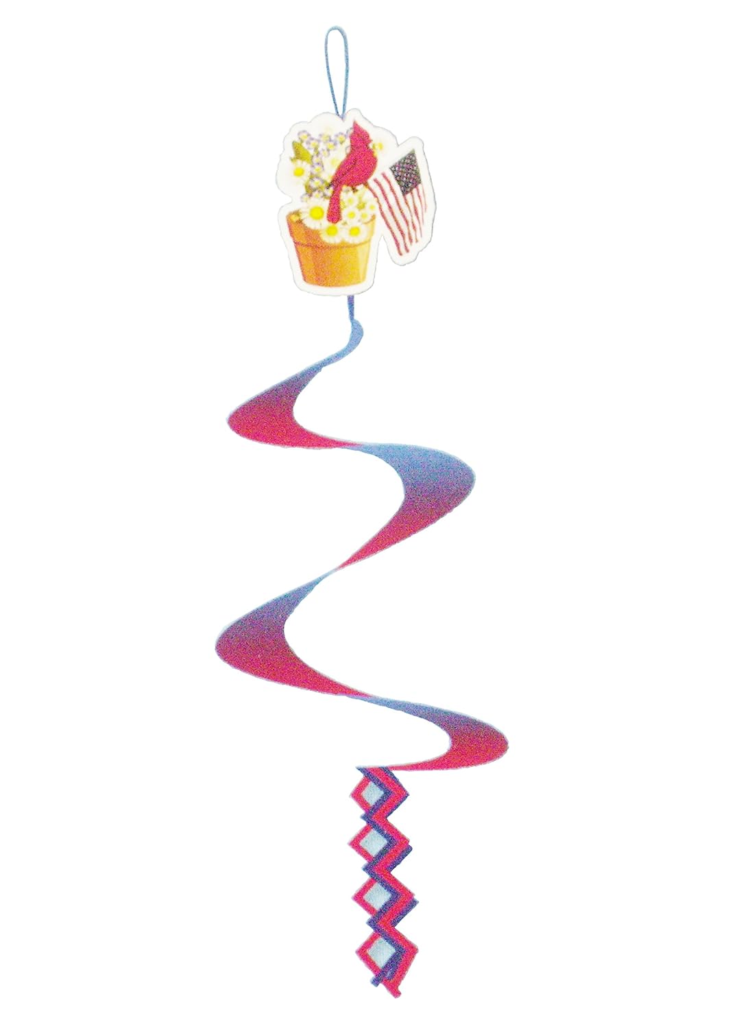 Red Cardinal and Old Glory Patriotic Decorative Wind Spiral Colorful Wind Spiral has a bright red cardinal on a pot of flowers with the American flag Size: 39" x 6 1/2"