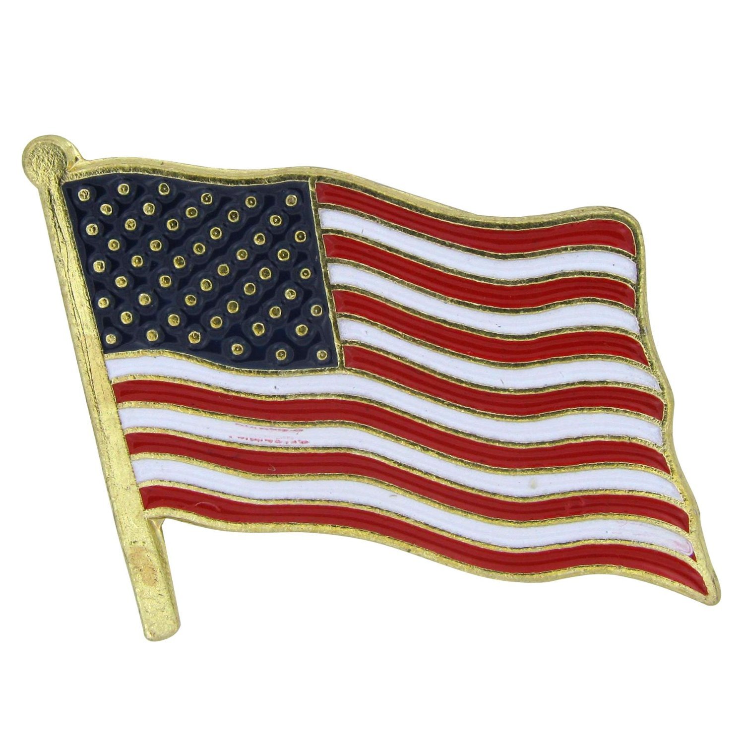 Double USA Flag Pins. Wear these metal double USA flag pins on your lapel or handbag for a simple yet stylish way to express your American pride! Tuck these star-spangled accessories in patriotic goody bags for a spirited favor at a Fourth of July or Labor Day party. (6 dozen per unit) 1 1/2"