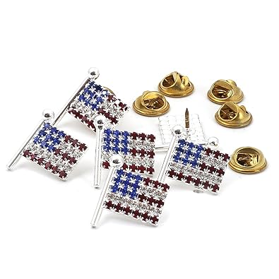 Silver Crystal Rhinestone Small American USA Patriotic Flag Pin, 6 pcs