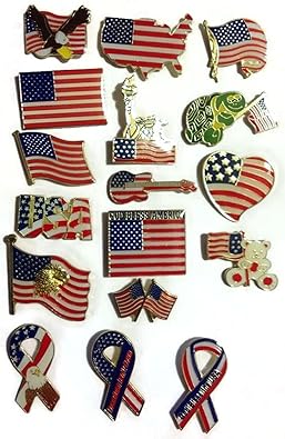 17 Different American Flag Hat Lapel Pins