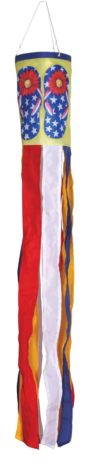American summer windsock Beautifully detailed print designs and embroidery with matching fabric and streamers Windsock is fully hemmed; high-quality durable polyester UV resistant fabric; windsock includes snap hook and swivel Weather and fade Resistant Licensed Art; 6-inches by 42-inches