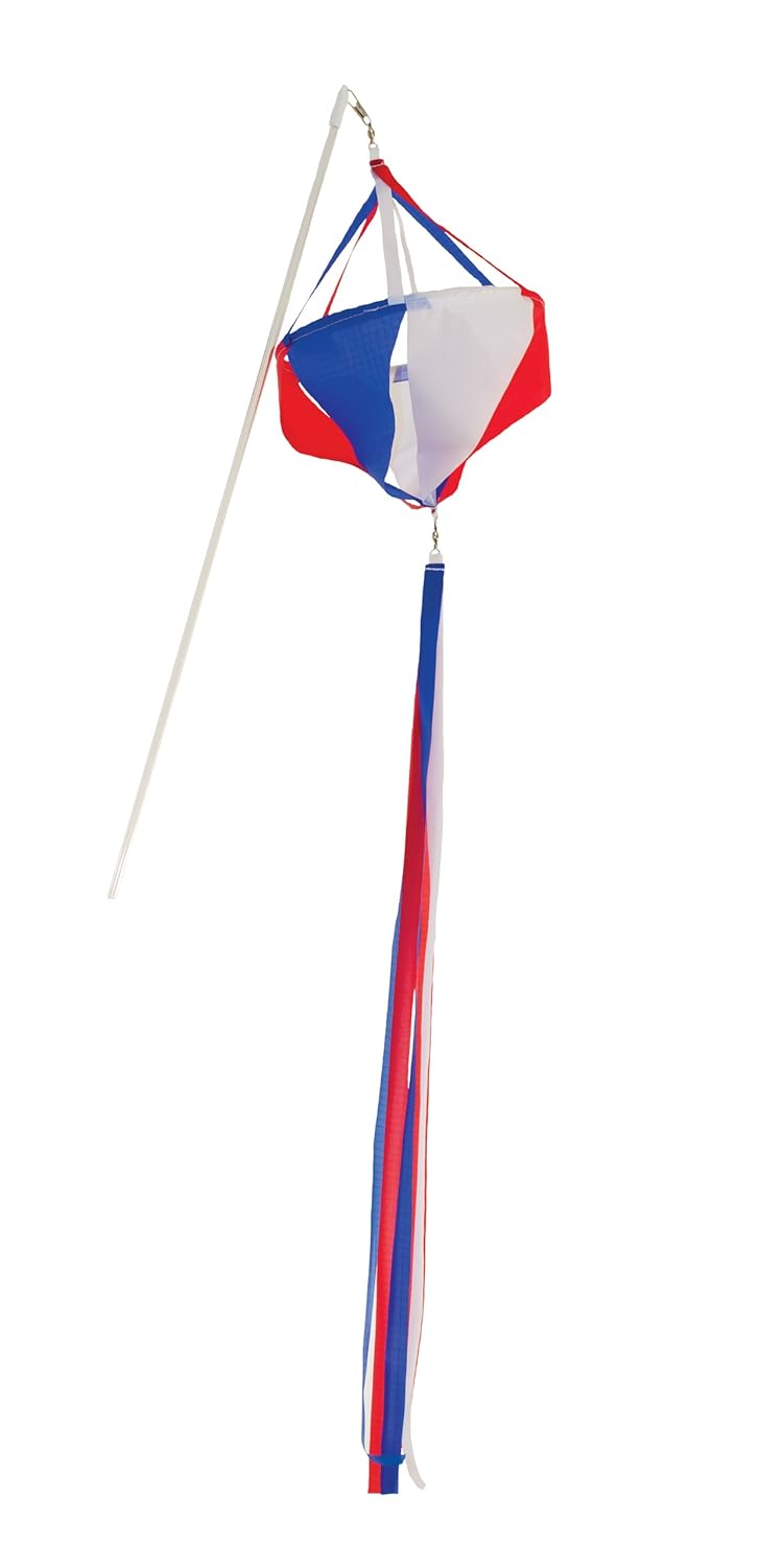 In the Breeze Patriot Spinnie on a 24 inch No-Shatter Plastic Wand. Made with lightweight weather resistant fabric, this fun product is designed to spin. Sold in a 6 PC Pack. Make your own color in motion.