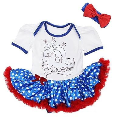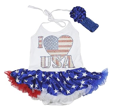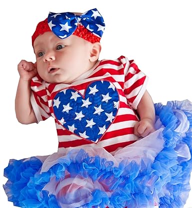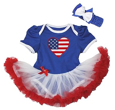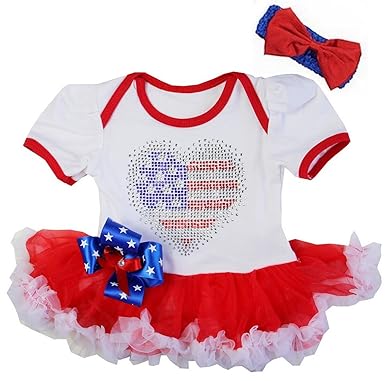 4th July USA Flag Heart Blue Bodysuit White Red Baby Dress Nb-18m