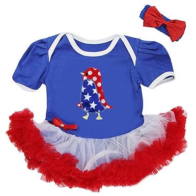 Baby Royal Blue White Red 4th July Bird Bodysuit Tutu & Headband