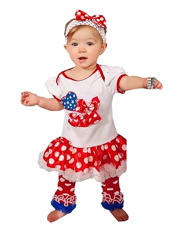 Baby Red Polka Dots USA Flag Bodysuit Tutu Leg Warmer Set