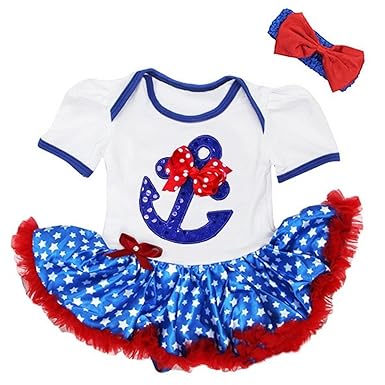 Baby Red Polka Dots Anchor Blue Star 4th July Bodysuit Tutu Headband 2pcs Set