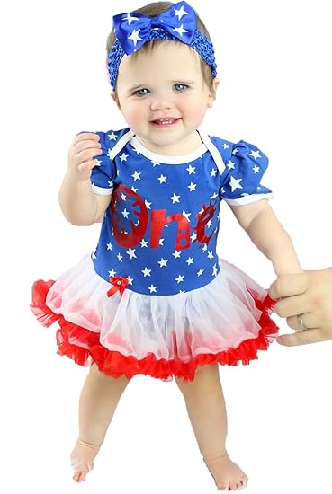 Birthday ONE Dress Patriotic Star Blue Jumpsuit White Red Tutu Baby Dress Nb-18m