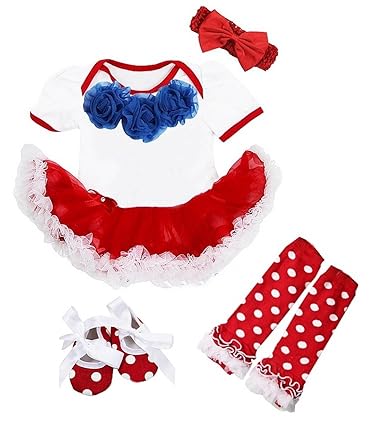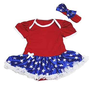 4th July Red Bodysuit Romper Patriotic Stars Tutu Dress Girl Clothing Nb-18m