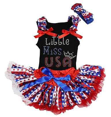 4th July Little Miss USA Black Top Stripe Star Newborn Baby Skirt