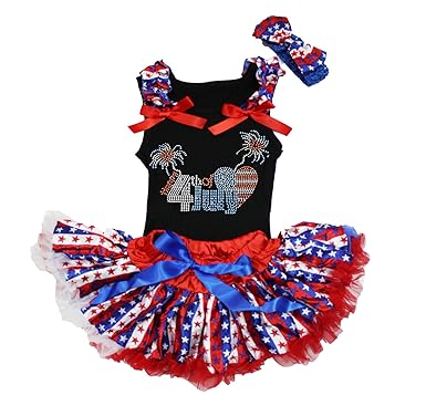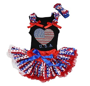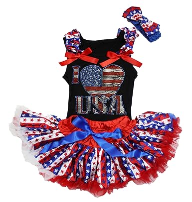 4th July Rhinestone USA Heart Black Top Patriotic Star Stripe Baby Skirt