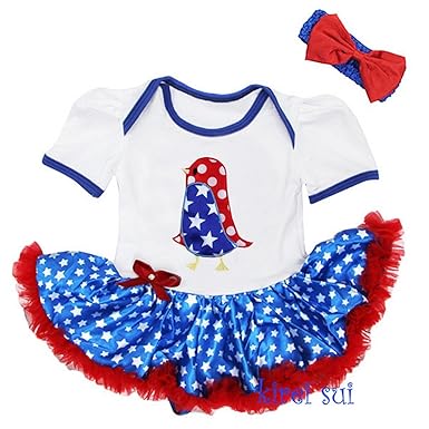Baby White Blue Red Star 4th July Bird Bodysuit Tutu & Headband