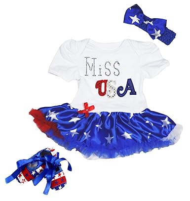 4th July Miss USA White Bodysuit Patriotic Star Baby Dress
