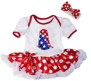 Baby White Red Polka Dots 4th July Bird Bodysuit Tutu & Headband