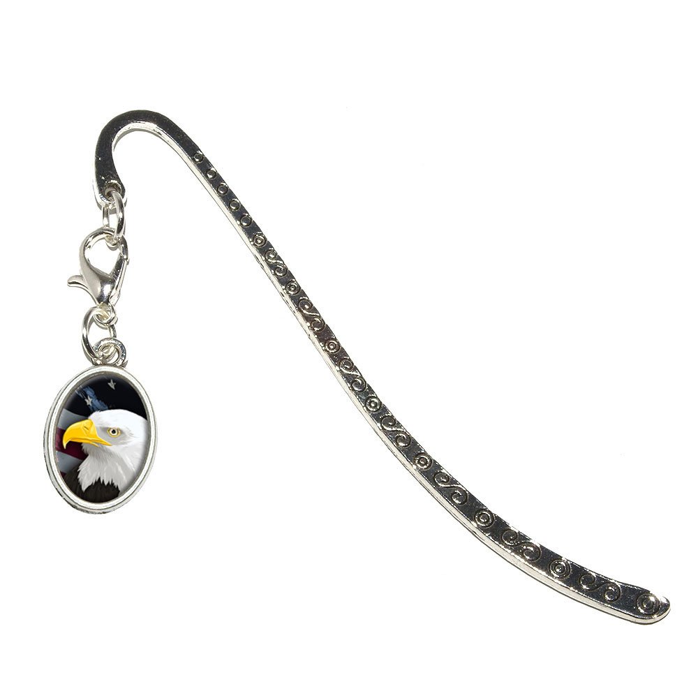 American Bald Eagle - Flag USA Patriotic Metal Bookmark Page Marker with Oval Charm
