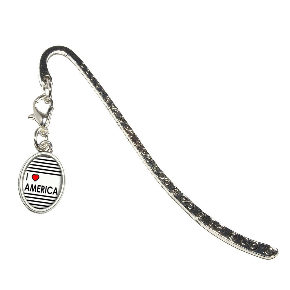 I Love Heart America - USA United States Patriotic Metal Bookmark Page Marker with Oval Charm
