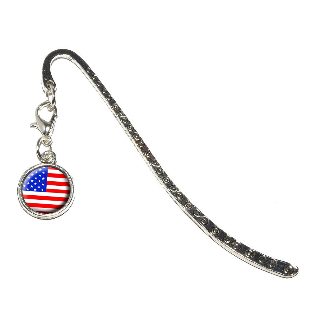 USA Flag - Patriotic Metal Bookmark Page Marker with Charm