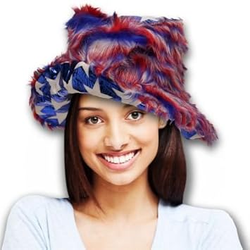 Show our nations colors in this cool, fuzzy, furry, fun and festive Bucket Hat. Stars on top, RedWhiteBlue furry fuzz all around. One size fits most. Sold by the piece. Please order in increments of 1 piece.