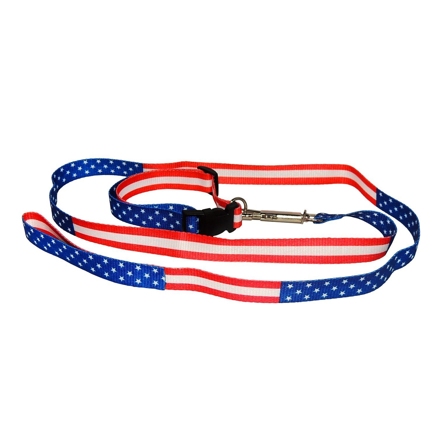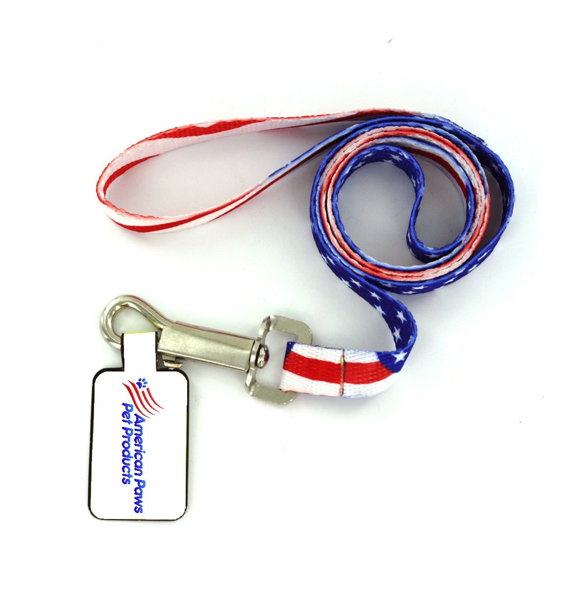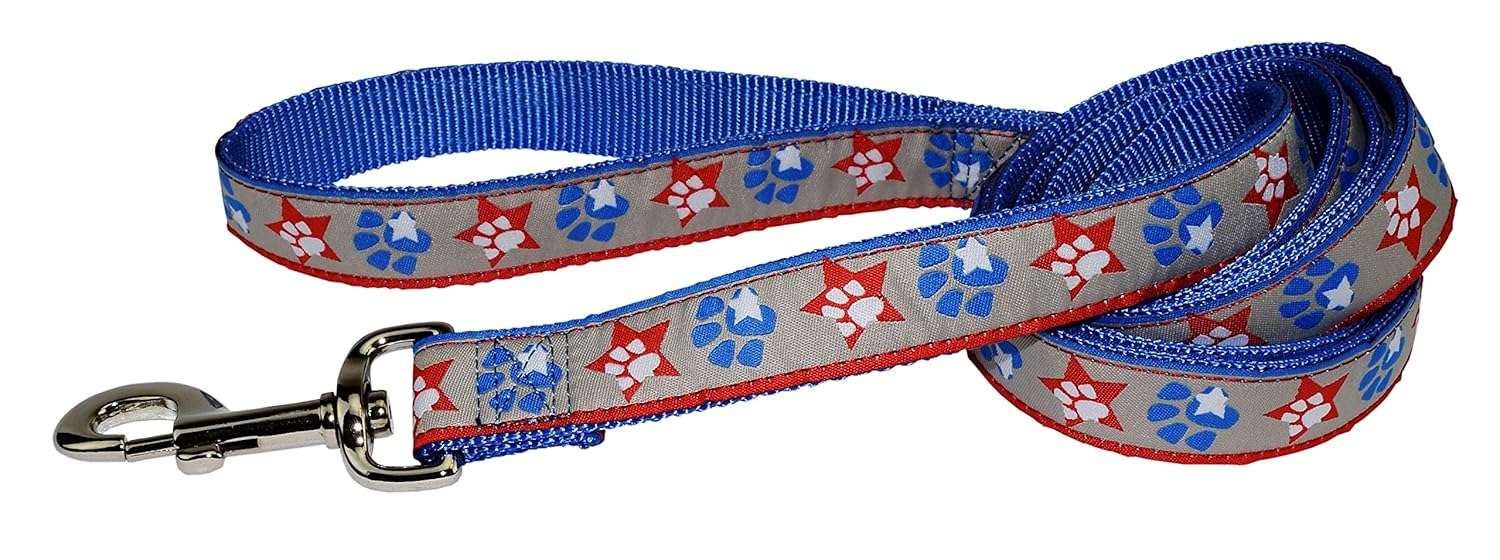 60-inch designer lead with Patriotic Paws design 3/4-inch by 60-inch size 100-Percent vibrant color-fast polyester Metal lead hook Lead is washable