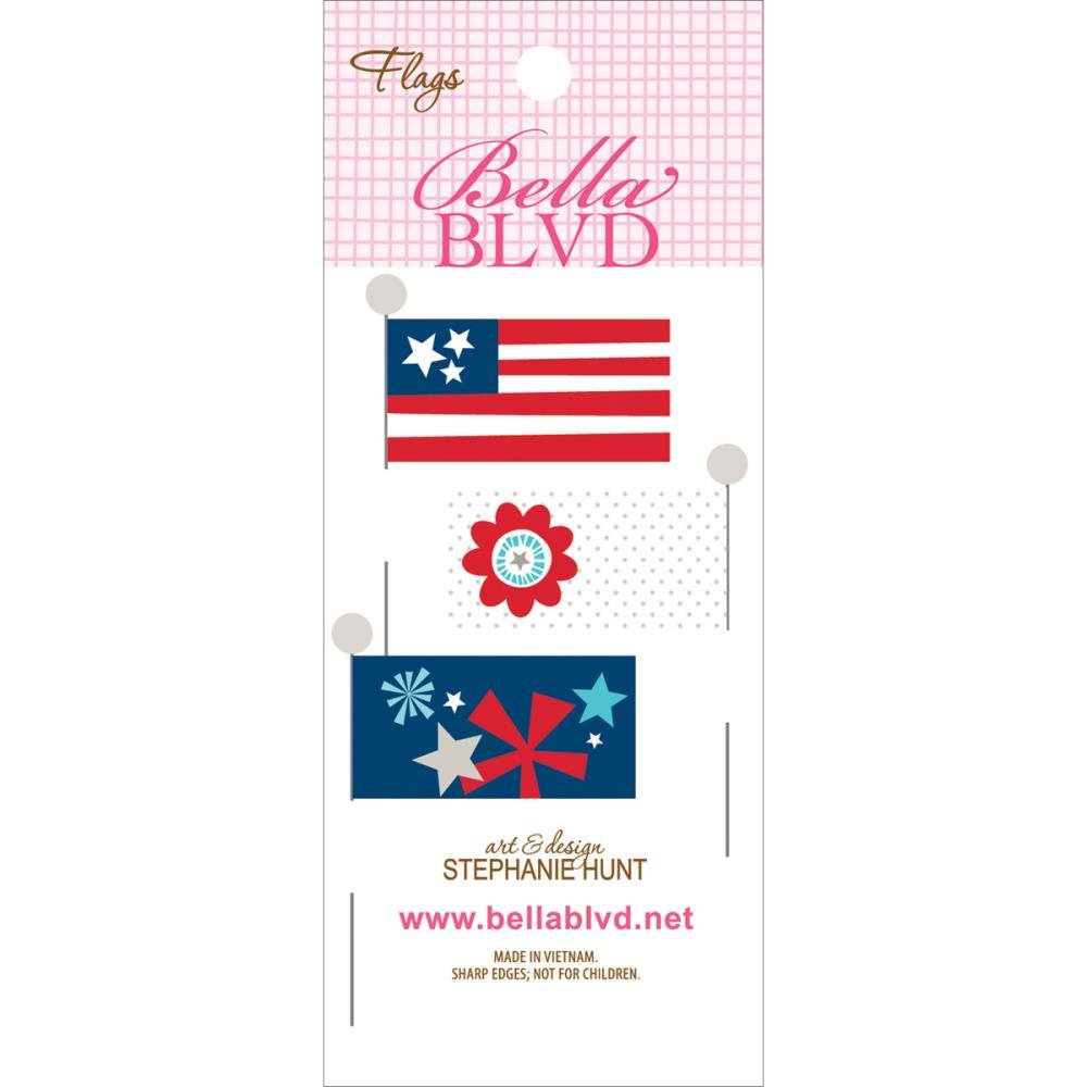 BELLA BLVD-All American Collection: Stick Pin Paper Flags. These little patriotic flags are the perfect accent piece for a fun summer scrapbooking project. This package contains three 1-1/2 inch tall paper flags. Available in a variety of designs; each sold separately. Imported.