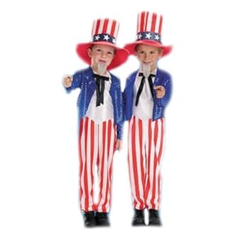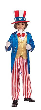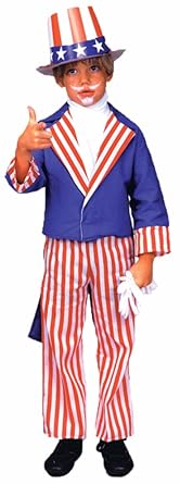 America; usa; stars and stripes; 4th of July; independence Child's Uncle Sam Costume Complete with hat, jacket, pants and bow tie Wear it for Independence Day, Halloween or school plays Child size medium design to fit ages 8-10