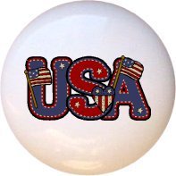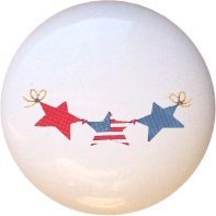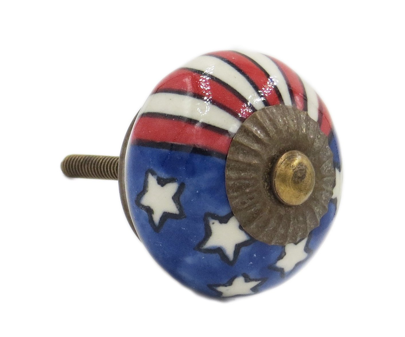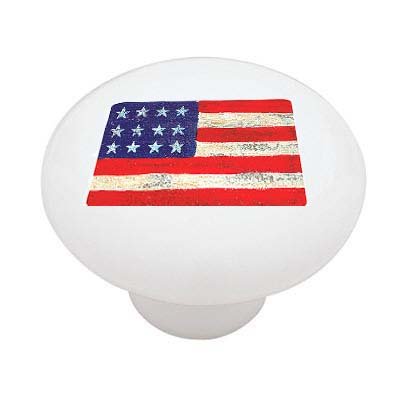 US Flag Patriotic Ceramic Knob Pull for Dresser, Cabinet, Drawers, Doors