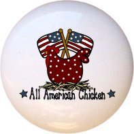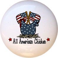 Ceramic Knob - Primitive All American Chicken #2 - Americana By Lisa