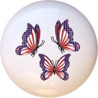 Ceramic Knob - Patriotic Butterflies - Butterflies