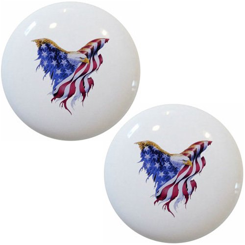 Set of 2 Eagle Flag Ceramic Cabinet Drawer Pull Knobs