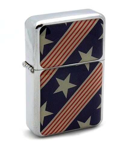 Patriotic Stars and Stripes Pattern Flip Top Refillable Aluminum Pocket Lighter