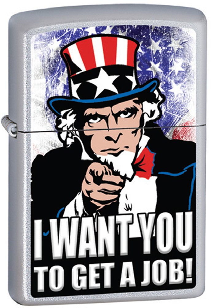 American Pride Uncle Sam I Want You To Get A Job Patriotic Zippo Lighter