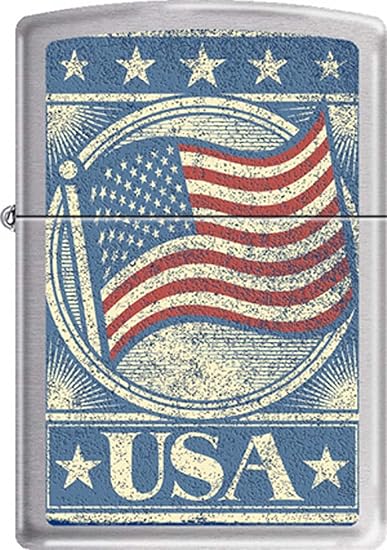 Made in USA Zippo lifetime guarantee Patriotic Theme Satin Chrome Finish